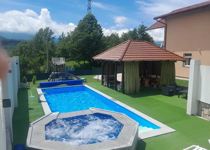 Die 3-Zimmer- Panorama liegt nur wenige Gehminuten entfernt vom Nationalpark Plitvicer Seen und bietet Grillanlagen und die Gärten für zusätzlichen Genuss. Zur Entspannung der Gäste bietet die Villa in Bihać eine Gemeinschaftslounge mit einem Esstisch.